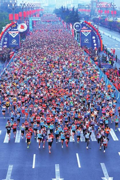 2月23日,2025眉山仁寿半程马拉松鸣枪开跑。
