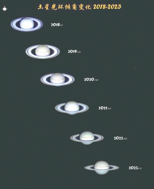 一种是土星环的倾斜角,从地球上看,每年土星环的倾斜角都不尽相同。今年3月24日,土星环的倾斜角为0度;11月24日,土星环的倾斜角再次接近0度,仅为0.37度。这两次几乎就像从侧面看一张纸一样,在视觉方向上很难识别到土星环。
