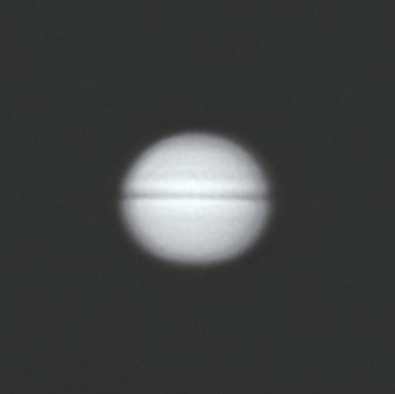 2025年4月29日在广东中山拍摄的土星特写,土星中间的黑线是土星环及其投影。