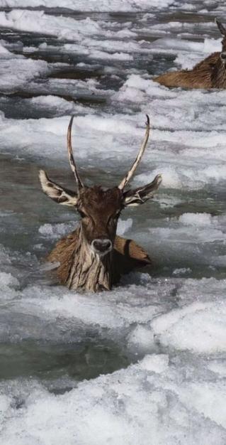 据悉,当天最低气温低至零下10℃。江面冰层厚重,3只白唇鹿深陷冰窟,早已体力不支,蜷缩在水中瑟瑟发抖,每多待一秒都面临生命危险。