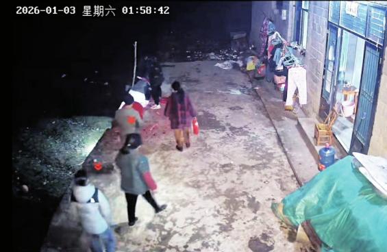 视频显示,按照当地“白事放炮报丧”的风俗,1月3日凌晨1点36分,寒风中,小林在空荡的院坝里点燃鞭炮,这既是为父亲送行,更是姐妹俩的求助信号。仅22分钟后,村民便陆续赶来:有人披着外套,有人趿拉着拖鞋,有人攥着手电筒蹒跚前行。