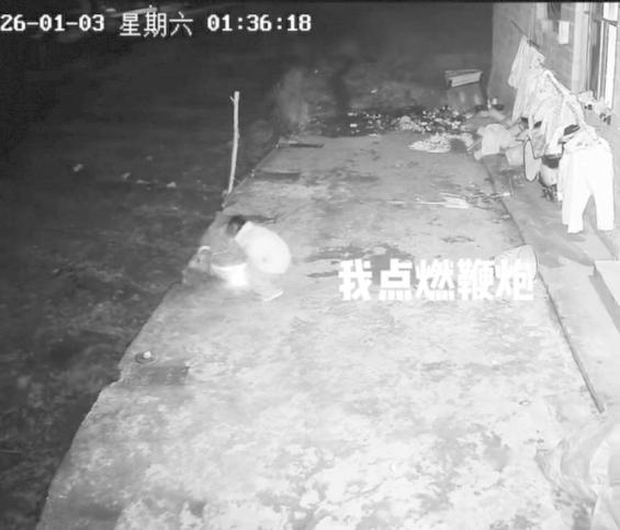 1月3日凌晨,小林点燃鞭炮报丧。视频截图